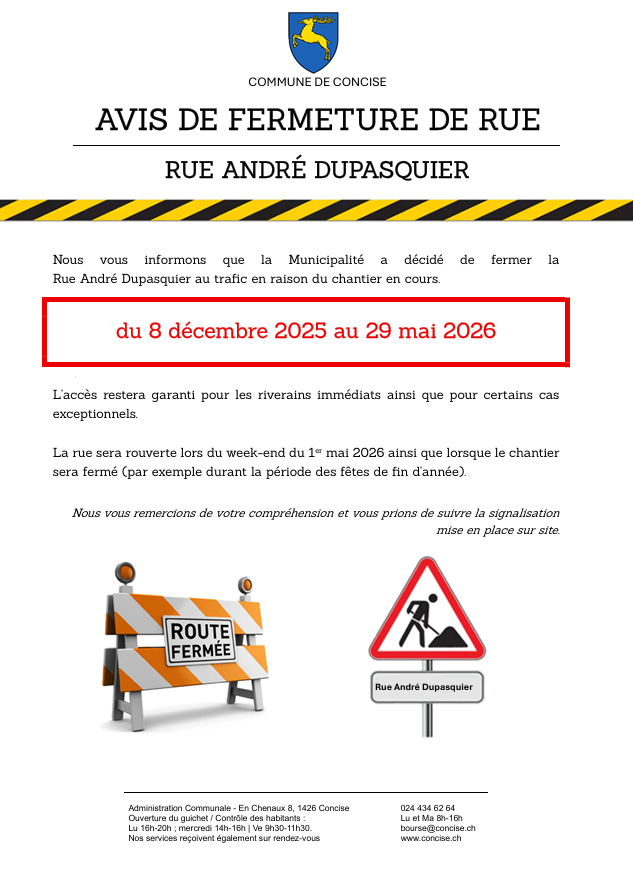 AVIS DE FERMETURE DE RUE – Rue André Dupasquier