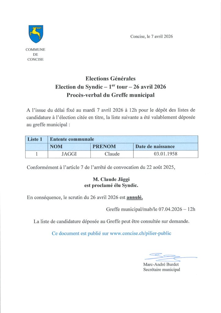 ELECTIONS GENERALES 2026 – SYNDICATURE – PV DE DEPOT DES LISTES