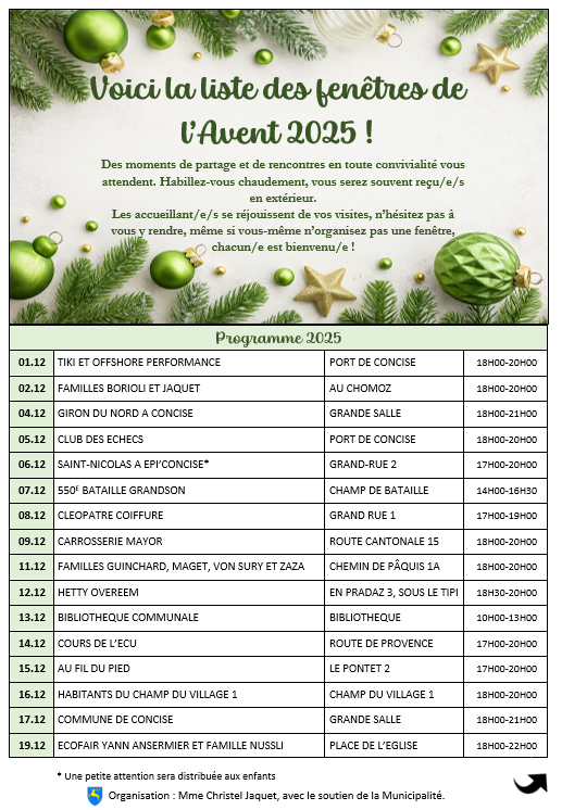 Fenêtres de l’Avent 2025 et informations de fin d’année