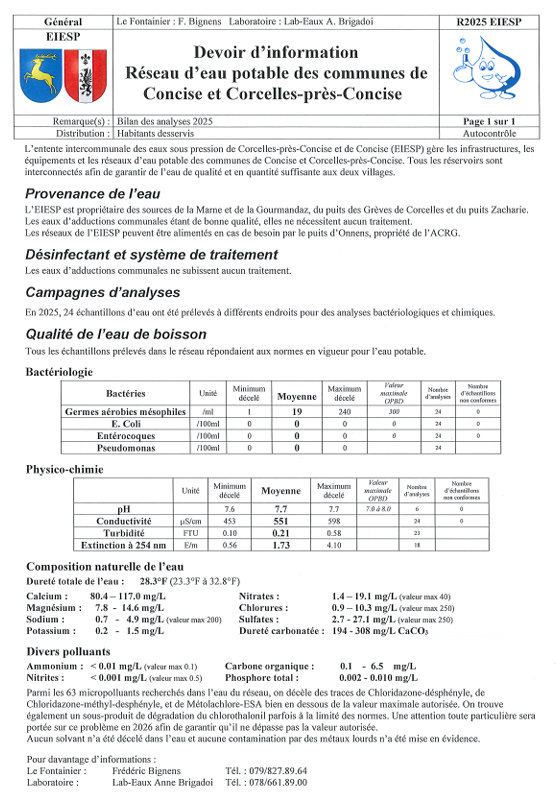 Réseau d’eau potable des communes de Concise et Corcelles-Près-Concise